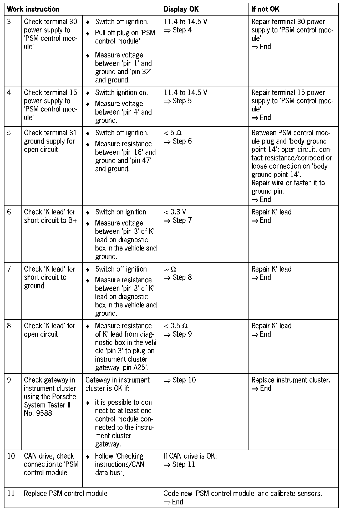 NOTE: The Porsche System Tester II No. 9588 and the 'PSM control module' are not connected.