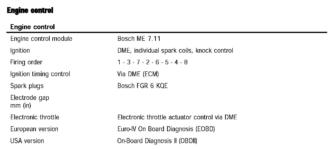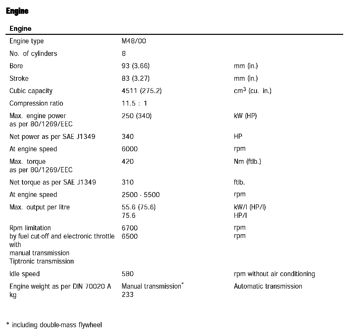 Technical data for M48/00 engine (Cayenne S)Information