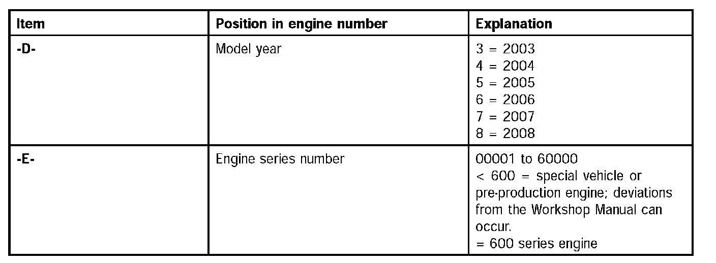 Position and coding of the engine number