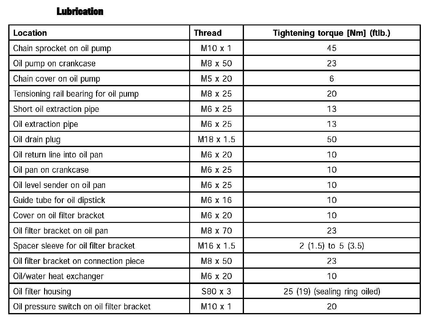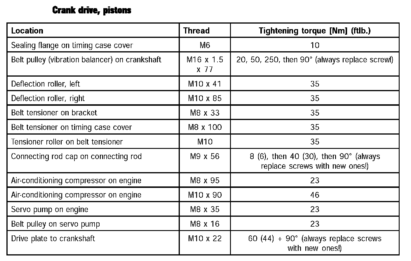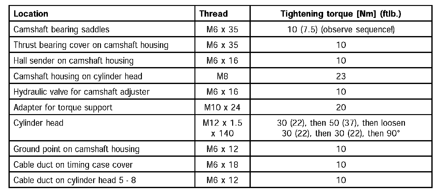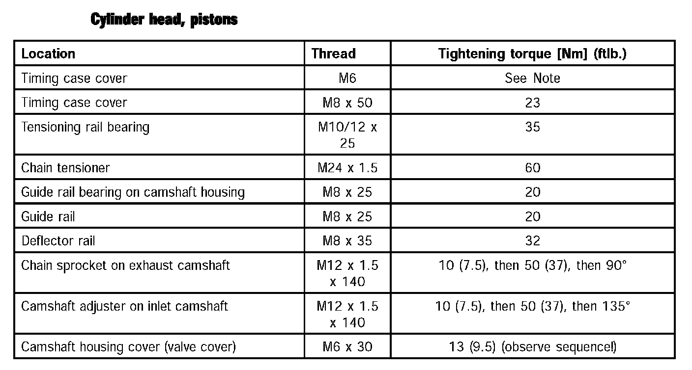 ^ The most important torques are specified at the end of the respective chapters.