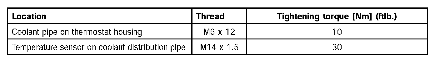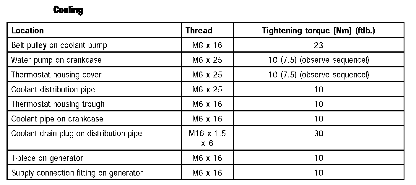 ^ The torque for the coolant pump is provided in Chapter 19.