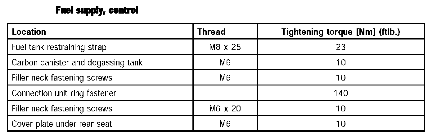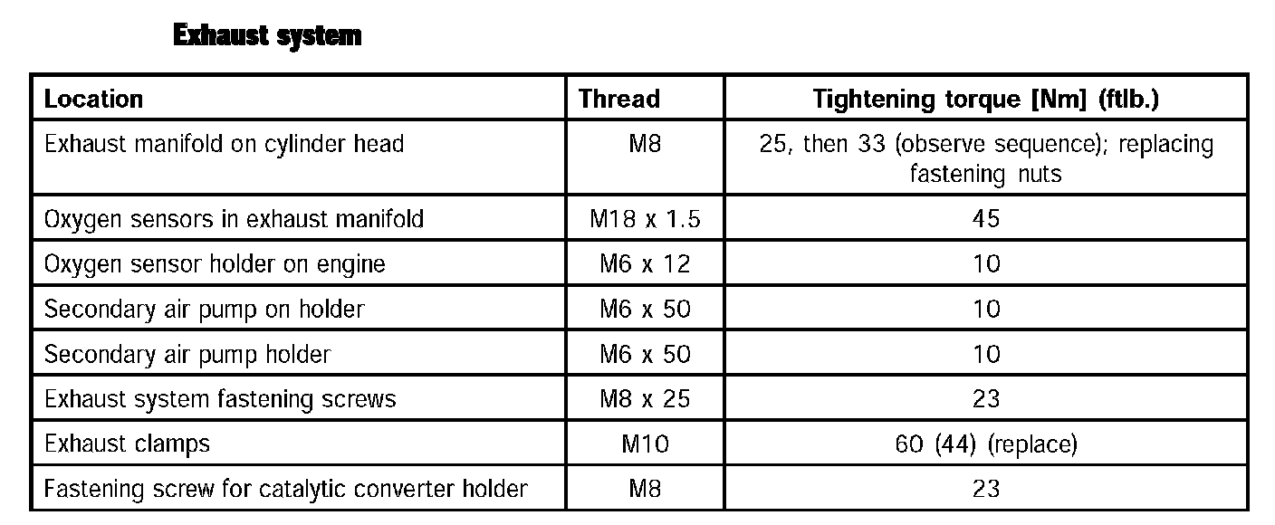 ^ This torque list is organized according to component groups in the same way as service numbering.