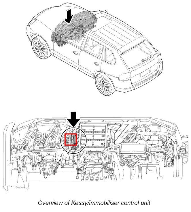 - If the Kessy control unit is replaced, it must be programmed using the Porsche System Tester. This will ensure that the control unit is taught for the relevant vehicle, country version and equipment.