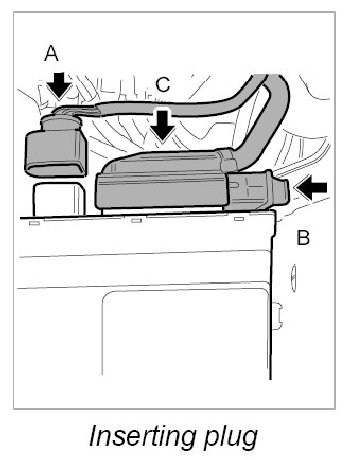 1. Push on plug -arrow C- and lock it -arrow B-.