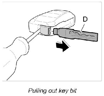 5. Pull out key bit -arrow- from the remote control.