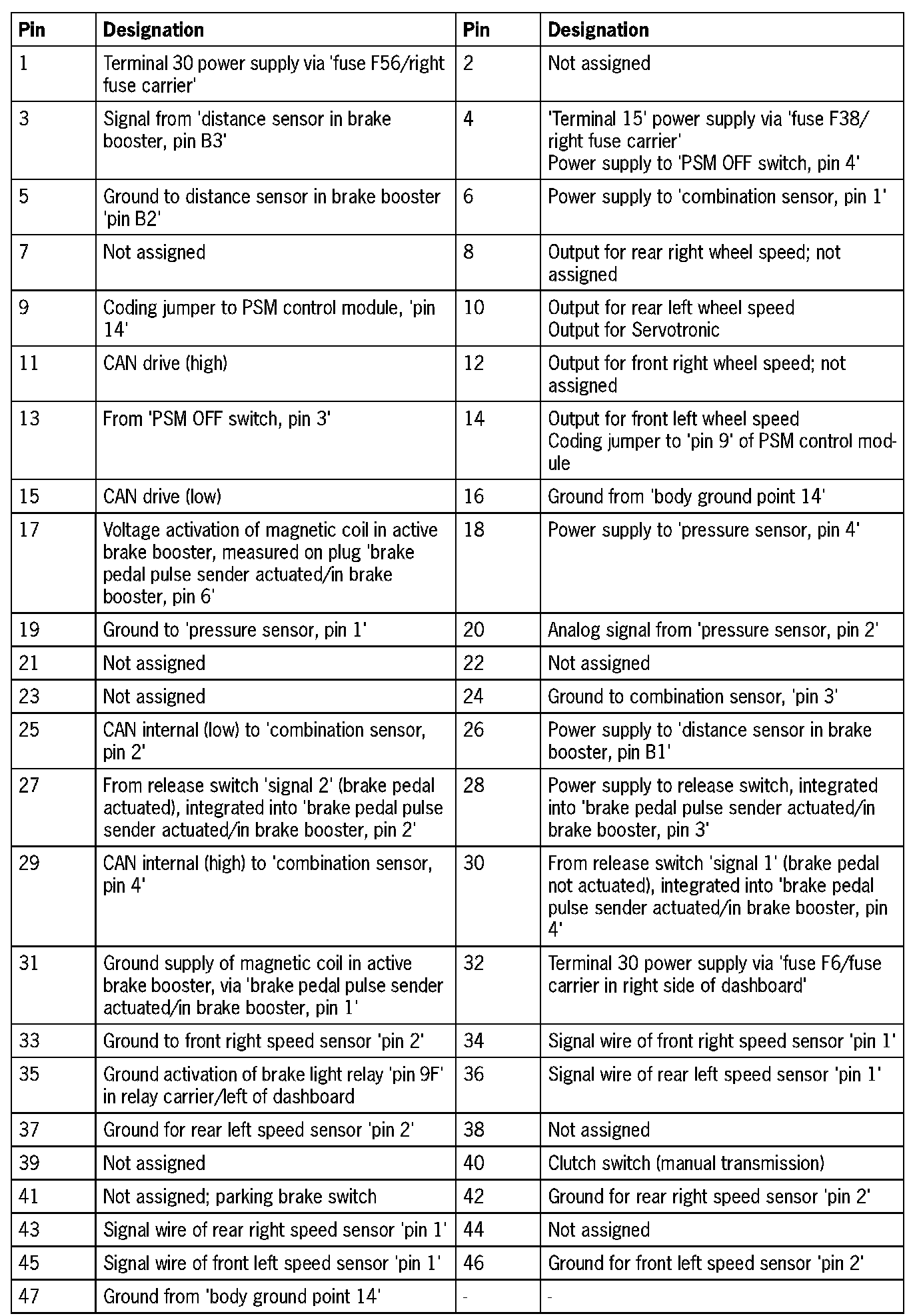 PSM 0101 Connector Assignment