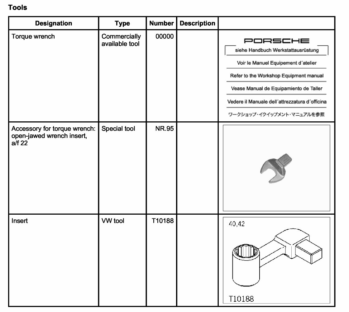- - Torque wrench 00000 covering the range between 70 Nm (52 ftlb.) and 188 Nm (133 ftlb.).