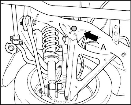 The measurement is made from the wheel contact area to the bottom edge of the side member of the suspension subframe -A- (in front of drain bore at connection point of control arm to suspension subframe).