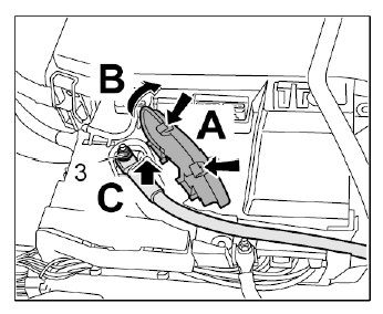3. Place line on threaded bolt -Arrow C- and tighten using a new fastening nut. -12- - Tightening torque: 3.5 ftlb..