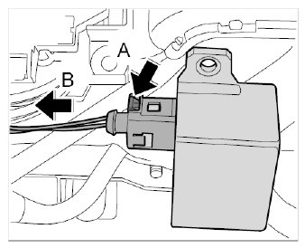 14. Release connector -Arrow A- and remove from charging relay -Arrow B-.