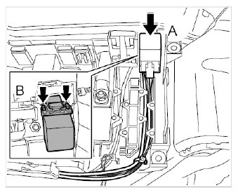 12. Press relay carrier in -Arrow A- until locking tabs -B- are felt to engage.