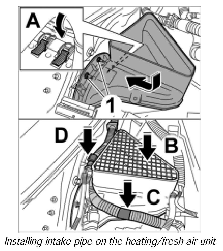 Installing intake pipe on the heating/fresh air unit