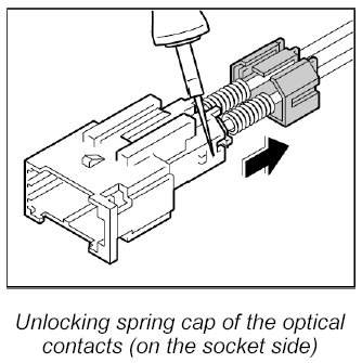 When exchanging the LWL, the optical contacts from the plug connection must be removed.