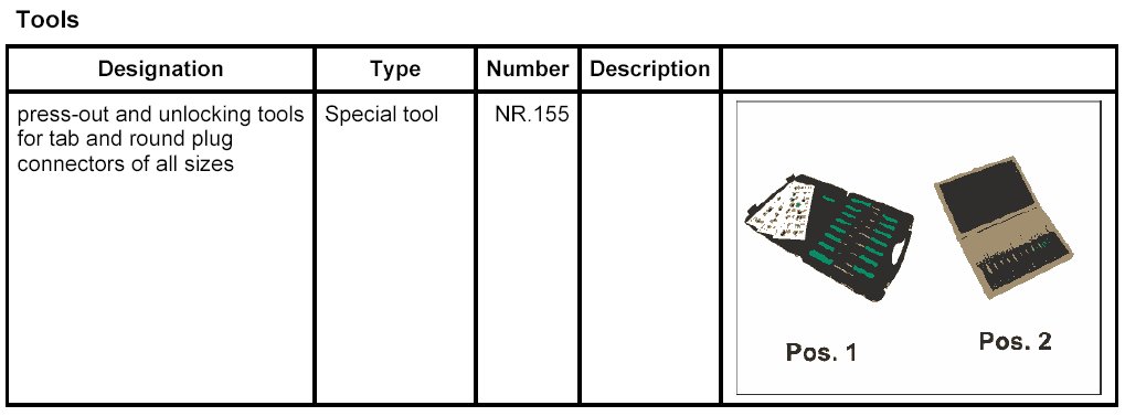 2. Position the press-out and unlocking tools for tab and round plug connectors of all sizes NR.155 the primary locking mechanism and lift the locking mechanism.