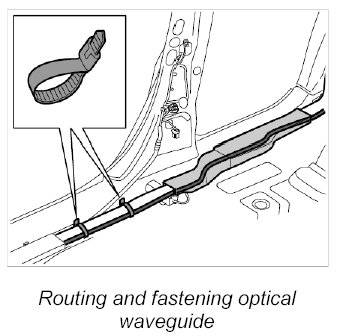 2. Route the new optical waveguide along the main wire harness, guide it through the existing cable ducts and tie it to the main wire harness using tie-wraps.