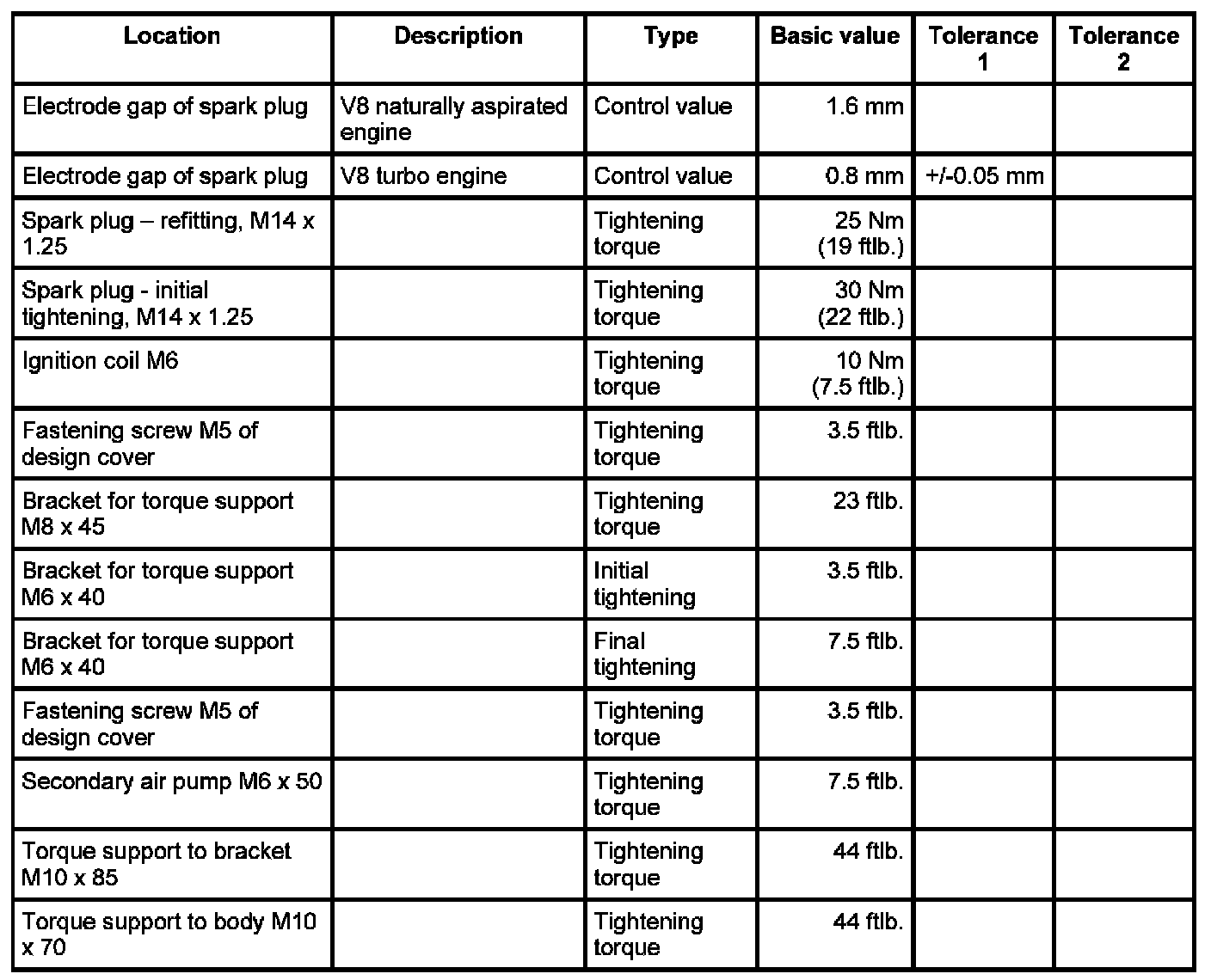 8. Tighten spark plugs using special tool spark plug wrench 3122 B. - Tightening torque: 25 Nm (19 ftlb.), - Tightening torque: 30 Nm (22 ftlb.)