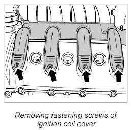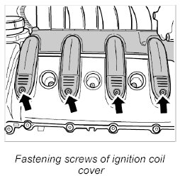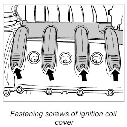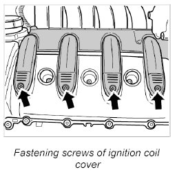 1. Unscrew the four fastening screws on the ignition coil cover.