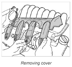 5. Unscrew the four fastening screws on the ignition coil cover (illustration shows side 5 - 8).
