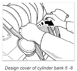 4. Tighten the four fastening screws on the ignition coils (illustration shows side 5 - 8). - Tightening torque: 3.5 ftlb.