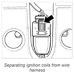 3. Tighten the four fastening screws on the ignition coils. - Tightening torque: 3.5 ftlb.