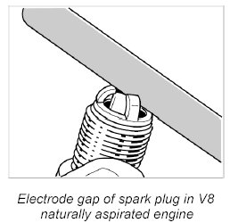 6. Check electrode gap in V8 naturally aspirated engine. - Control value: 1.6 mm