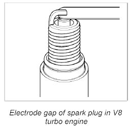 7. Check electrode gap in V8 turbo engine. - Control value: 0.8 mm ± 0.05 mm