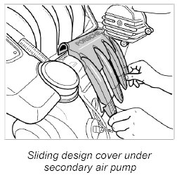 INFORMATION: Place a cloth between secondary air pump and design cover to avoid scratching the cover.