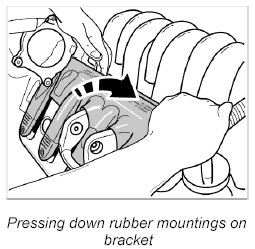2. Then press in the two rubber mountings on the bracket. The rubber mounts must be felt to engage.