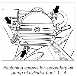 5. Reinstall secondary air pump. Tighten the three fastening screws. - Tightening torque: 7.5 ftlb.