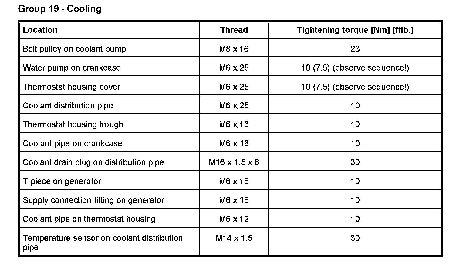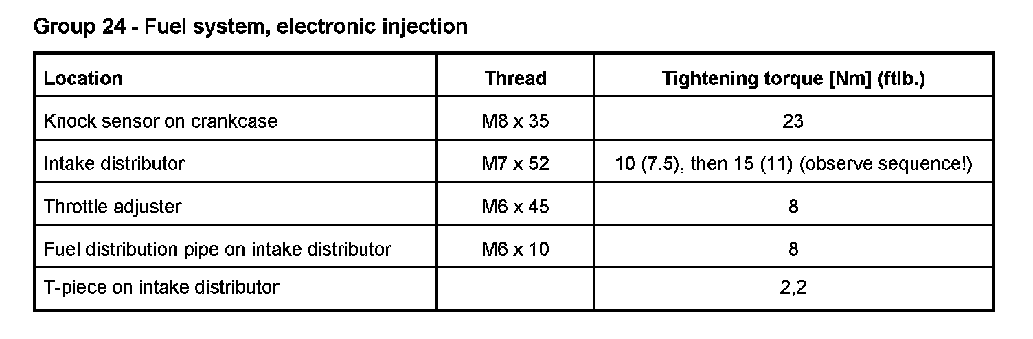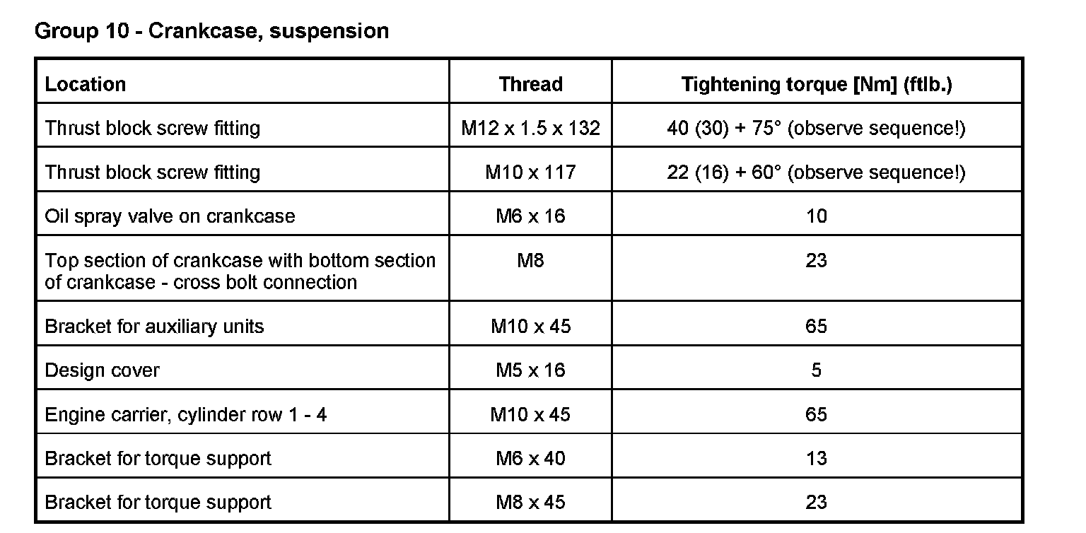 The tightening sequences are indicated in the figures in the corresponding chapters, and it is essential to observe them.