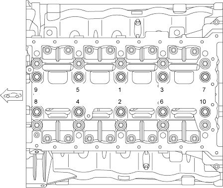 Fit cylinder head. Insert M12 x 1.5 x 140 cylinder head screws (screws can be used again).