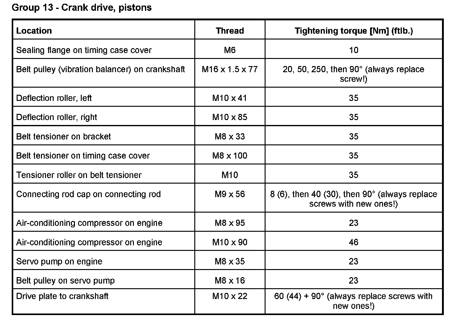 Tightening torque: 44 ftlb. then Torque angle: 90�