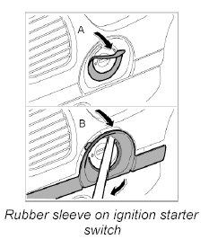 1. Carefully lift rubber sleeve on the ignition starter switch -arrow A- using a screwdriver, for example, and remove it.