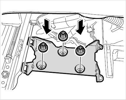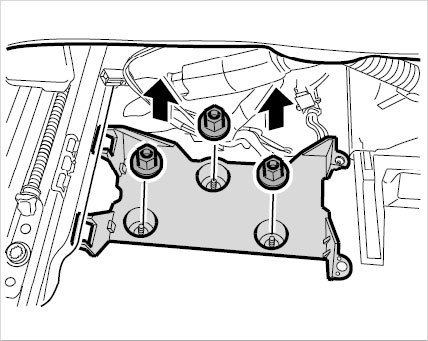 4. Unscrew the three fastening nuts and remove support for telephone control unit.