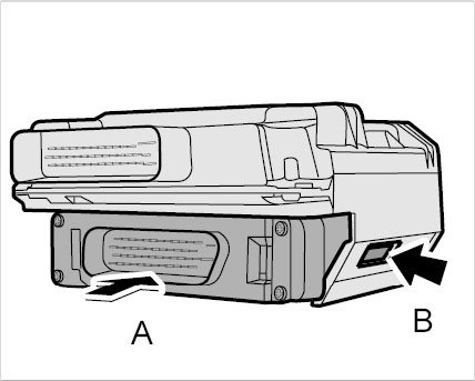2. Connect the two connectors -A- and push in the locking mechanism -B- until it is felt to engage.