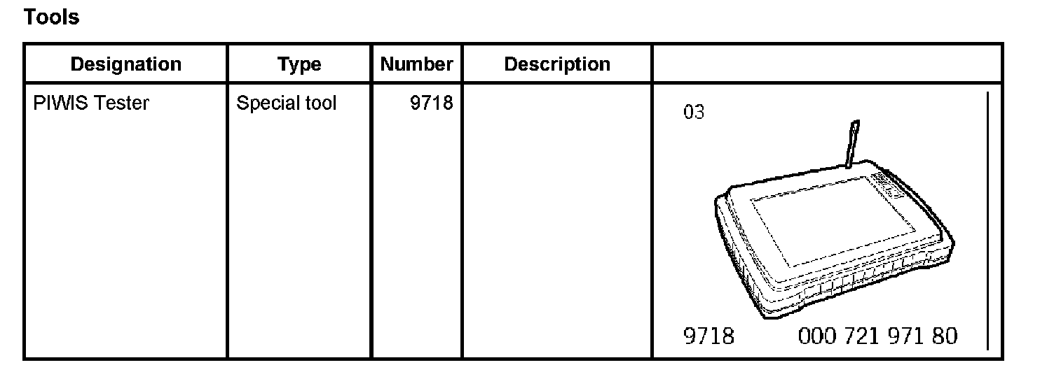 -> After working on wheel suspension parts, when replacing the steering-angle sensor, and after changing the wheel alignment values, calibrate the steering-angle sensor using the PIWIS Tester 9718.