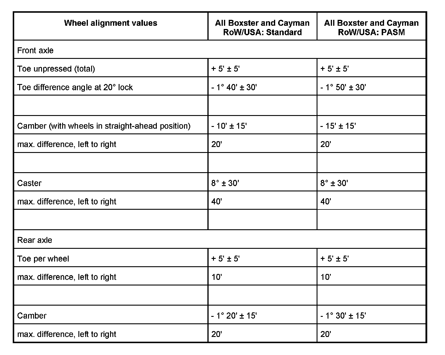 WM 440000 Adjustment values for suspension alignmentVehicle height