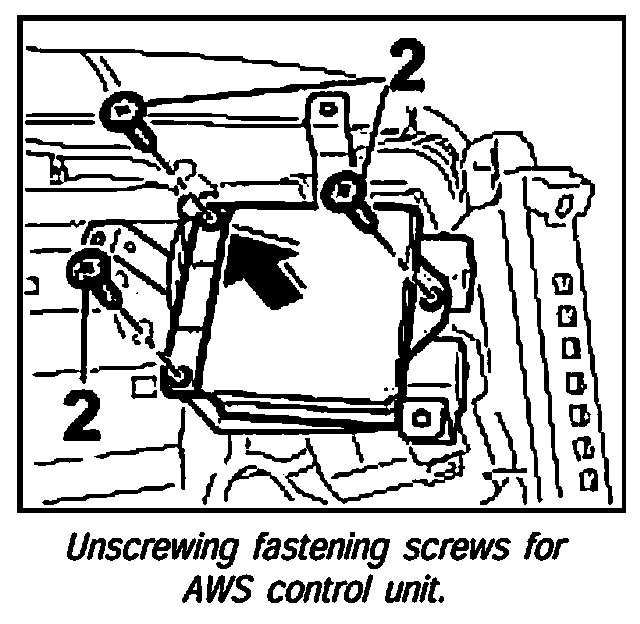 4. Unscrew the three fastening screws -2- of the AWS control unit and remove the control unit.