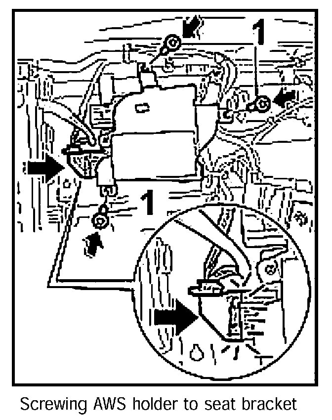 2. Position AWS holder on the seat bracket and screw it down using the three fastening screws -1-.