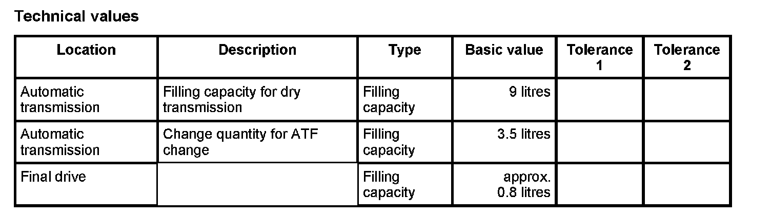 WM 3X00IN Technical data, automatic transmissionTechnical values