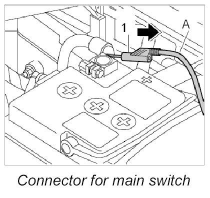 1. Pull off connector -1- - B+ for the main switch (battery disconnect switch) - on the B+ terminal.