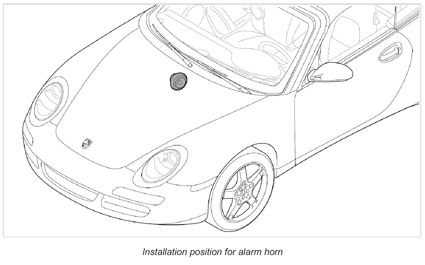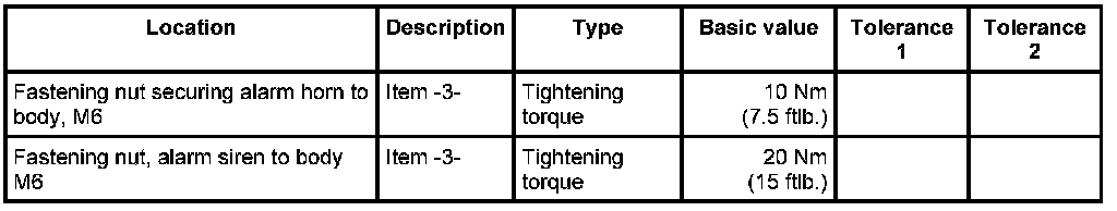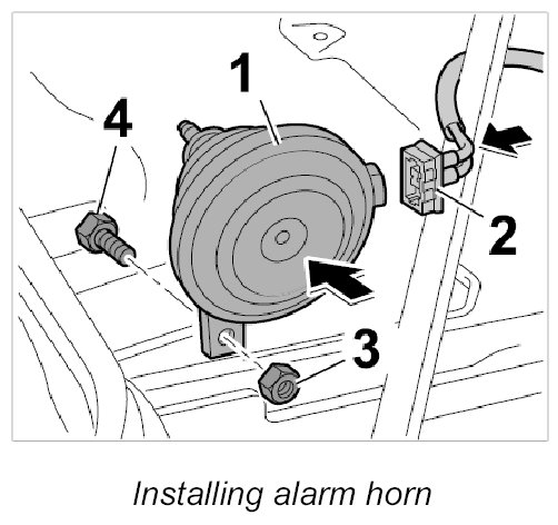1. Position alarm horn -1-. Insert fastening screw -4-, counter (if necessary) and tighten the fastening nut -3-. - Tightening torque: 10 Nm (7.5 ftlb.)