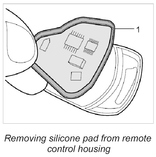 INFORMATION: In the event of a complaint (remote control buttons too easily pressed), the silicone pad and buttons can be replaced with modified spare parts.