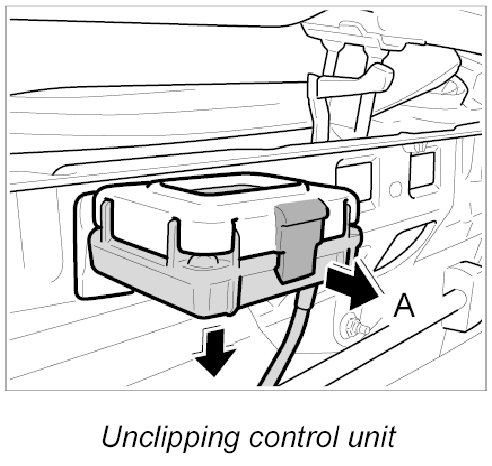 1. Unclip control unit from the holder -A-.