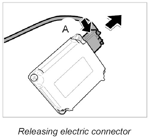 2. Release electric connector -A- and remove it from control unit.
