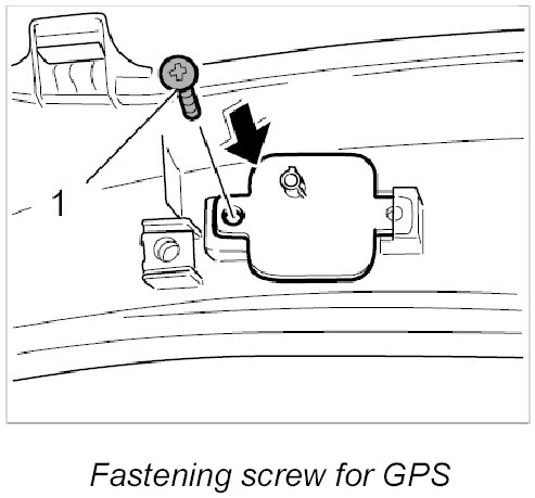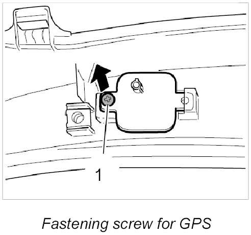 3. Unscrew the fastening screw -1- and pull the GPS antenna out of the cowl panel cover.