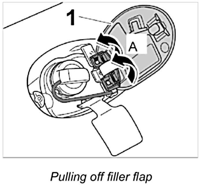 3. Pull filler flap -1- carefully in an upward direction.