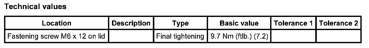 Tightening torque - Final tightening: 9.7 Nm (ftlb.) (7.2)