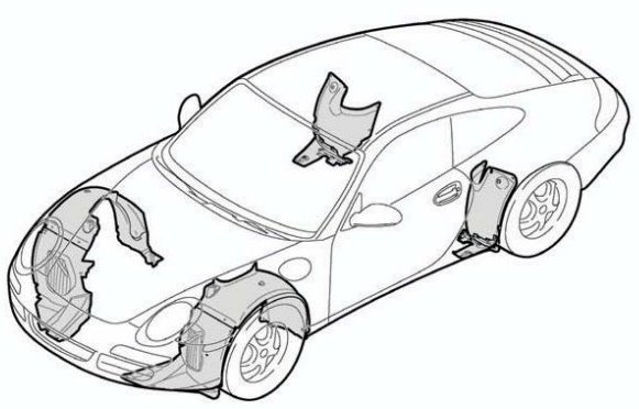 New to the 911 Carrera is a front spoiler on the front lower part which further reduces lift at the front axle as well as aerodynamic linings on the trailing link and control arm at the rear axle which also help to achieve the aerodynamic objectives for lift and resistance.