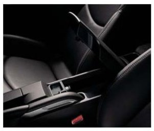 There are also further storage facilities in the rear part of the centre console. Here, underneath an upholstered cover that doubles as an arm rest, is a large compartment with approx. 1.5 litres of storage space (180 mm (L) x approx. 105 mm (W) x approx. 80 mm (H)). Integrated in this compartment are a 12 volt socket and a coin holder. The compartment is now locked via the central locking. By integrating the compartment into the central locking system, it has been possible to do away with the previous lock. Behind the large compartment is a small, open compartment. As before, the centre console also contains an ashtray with cigarette lighter.